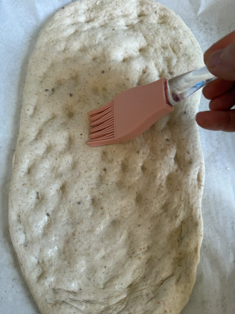 Donnez ensuite deux séries supplémentaires de plis de renforcement pour lui donner sa structure définitive. Transférez ensuite le pâton dans un récipient préalablement huilé avec de l’huile de graines et laissez-le pointer à température ambiante pendant environ 2/3 heures.