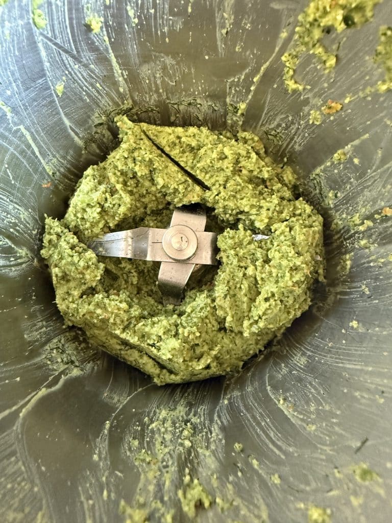 Hacher le tout à vitesse 6 pendant 20 secondes ou en tout cas jusqu’à obtenir une consistance dense.