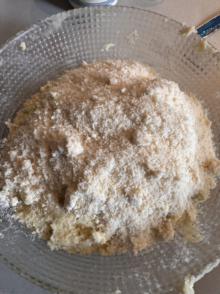 Ajouter ensuite le parmesan râpé et terminer de bien mélanger.