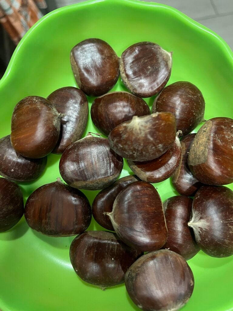 Pour cette recette, j’ai utilisé des châtaignes typiques de l’Irpinia, qui sont très grosses et sucrées. Les types de châtaignes pour marrons chauds ou même les marrons iront bien, car les très petites pourraient devenir plus sèches.