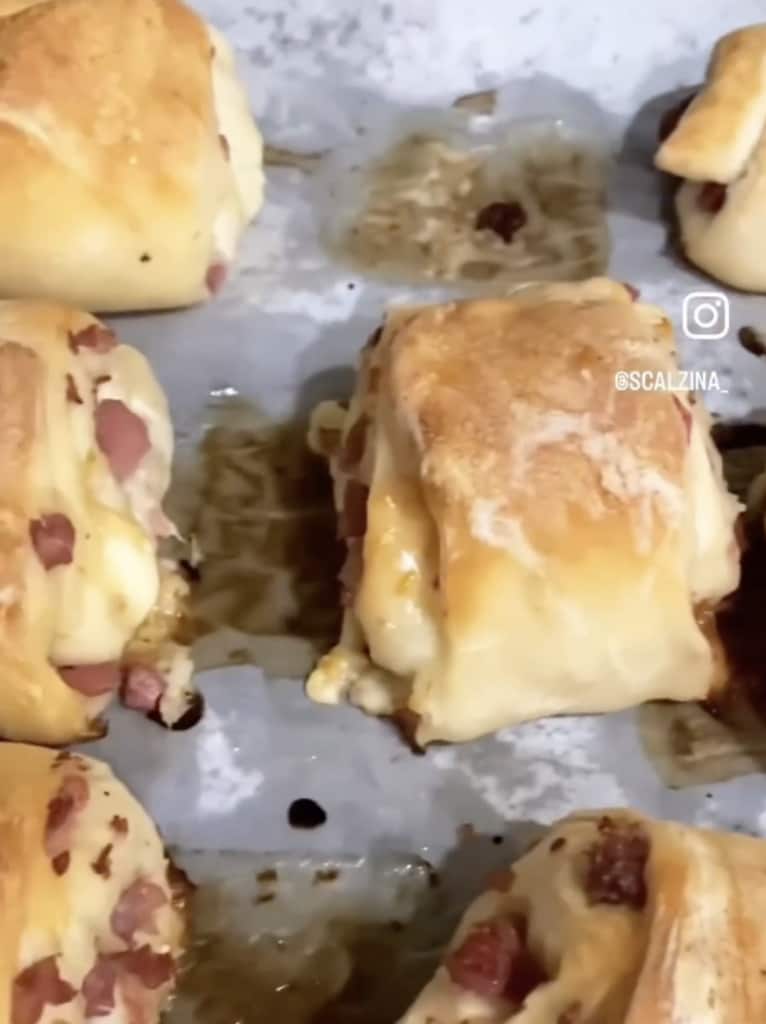 Nous pouvons maintenant les transférer sur une plaque, les badigeonner d’un peu de lait et les cuire au four statique à 220 degrés pendant environ 30 minutes.