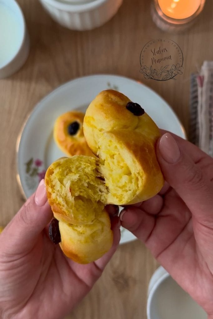 Les petits pains au safran ne sont pas seulement un plaisir pour le palais, mais aussi une expérience qui unit. Les préparer en famille est un moment précieux, une occasion d’enseigner aux plus jeunes l’importance de la patience, de la créativité et de la collaboration. Récemment, je les ai préparés avec mon fils pour un devoir scolaire, et nous nous sommes beaucoup amusés : moi comme « réalisateur » et lui comme « cuisinier ». Ensemble, nous avons appris que cuisiner est aussi un moyen de grandir, de partager et d’apprendre.