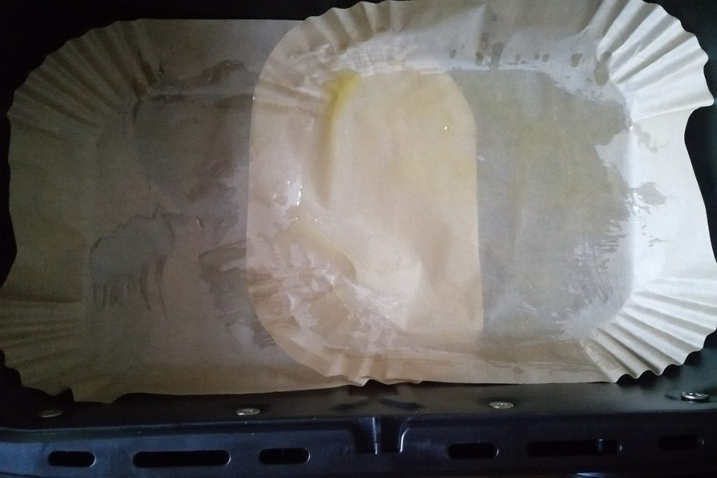 • Recouvrez le panier avec du papier adapté pour la cuisson en friteuse sans huile et badigeonnez-le d’un peu d’huile d’olive extra vierge.