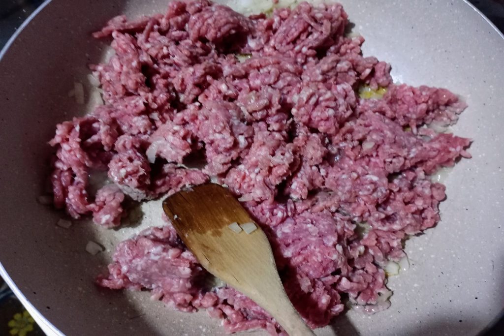 Incorporons la viande hachée et faisons-la rissoler pendant 5 minutes en remuant souvent.