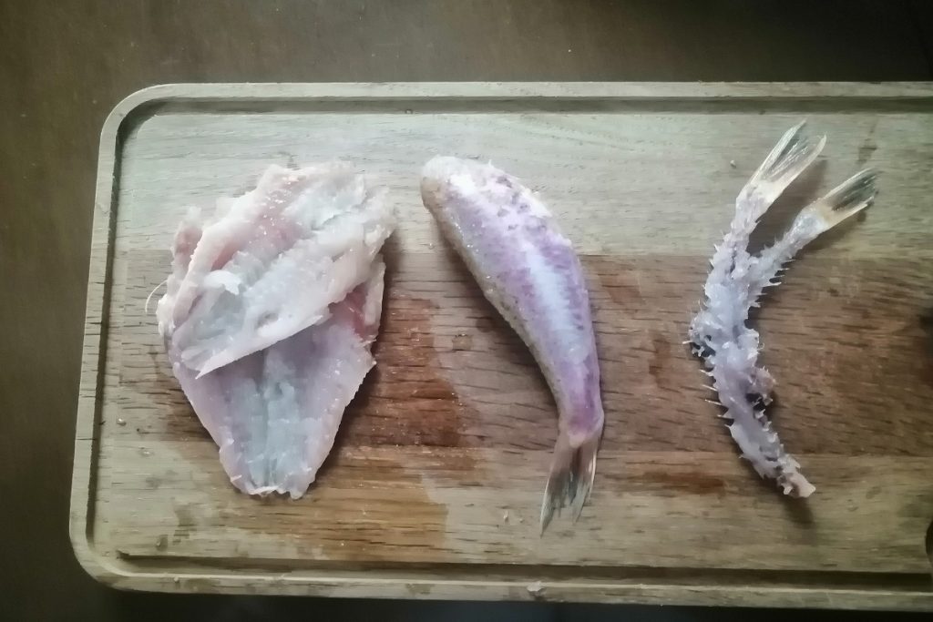 • Nettoyons les rougets en enlevant la tête, les entrailles et l’arête.