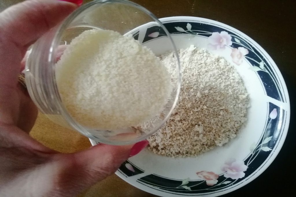 • Incorporez le parmesan râpé à la mie de pain, mélangez.