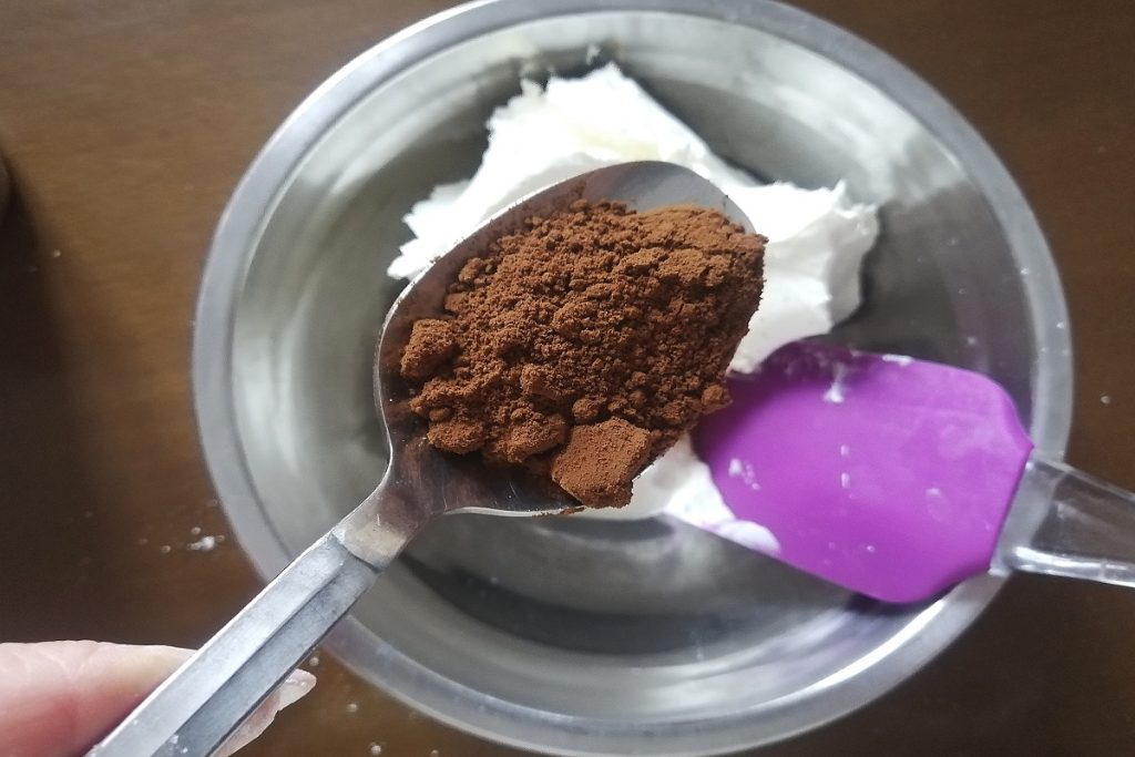 Dans un bol, versez le mascarpone, le café instantané en poudre et le sucre glace.