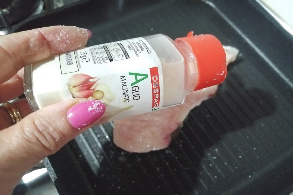 Lorsqu’il est bien chaud, déposez la viande dessus et assaisonnez avec du sel et de l’ail en poudre.