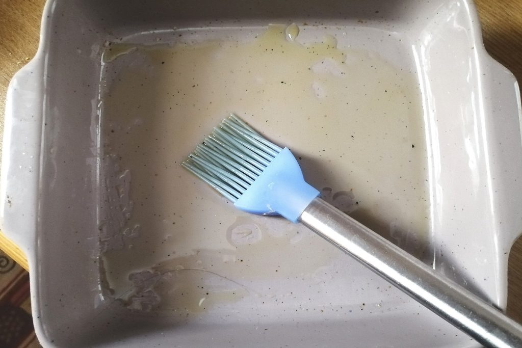 Avec un pinceau, badigeonnons un plat de cuisson avec de l’huile d’olive vierge extra et disposons à l’intérieur les crevettes farcies.