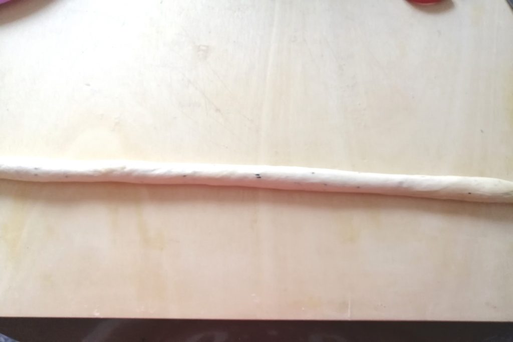 Étirez une petite portion de pâte en formant un boudin d’environ 15 cm.