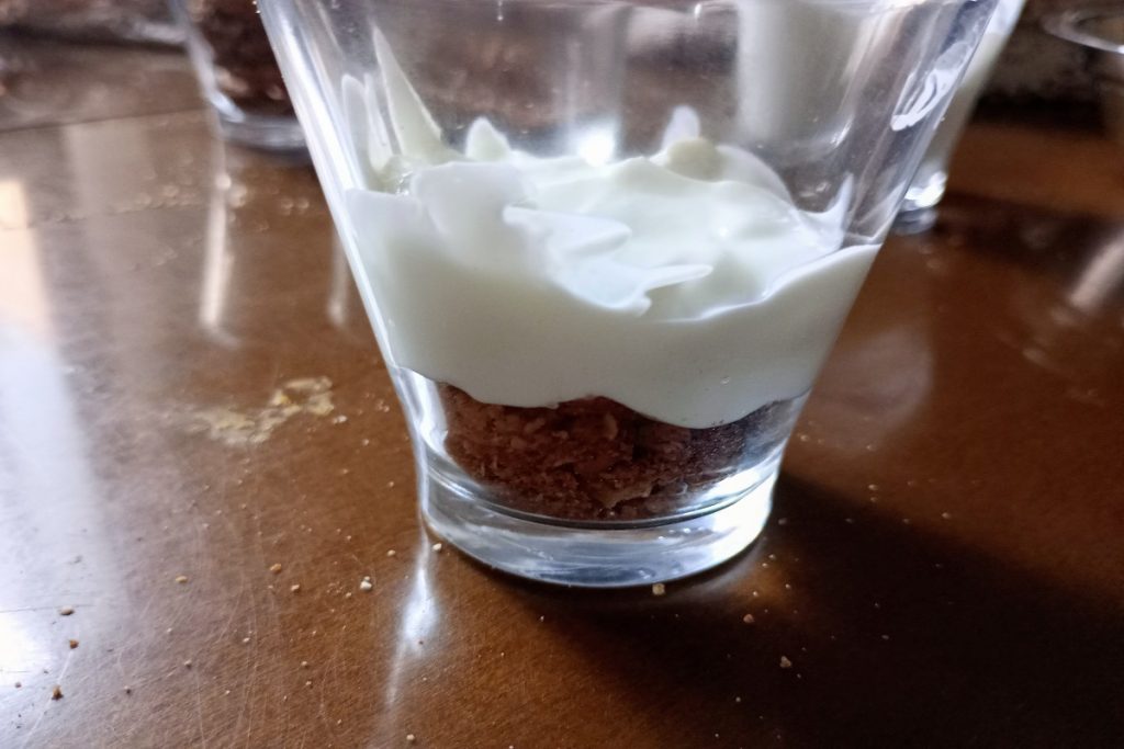 Émiettons les biscuits et versons-en un peu au fond de la verrine.