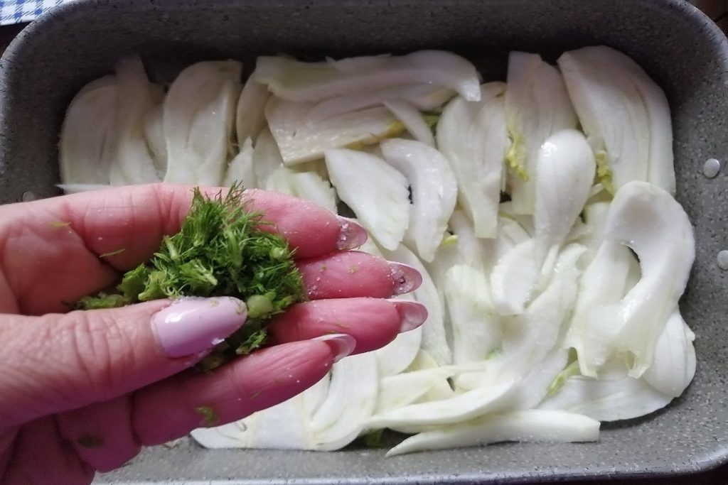 Nettoyons les fenouils des parties extérieures les plus dures, mettez de côté un peu de la barbe qui nous servira après.