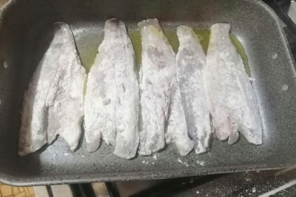 Disposez les filets de bar assaisonnés de sel et légèrement farinés.