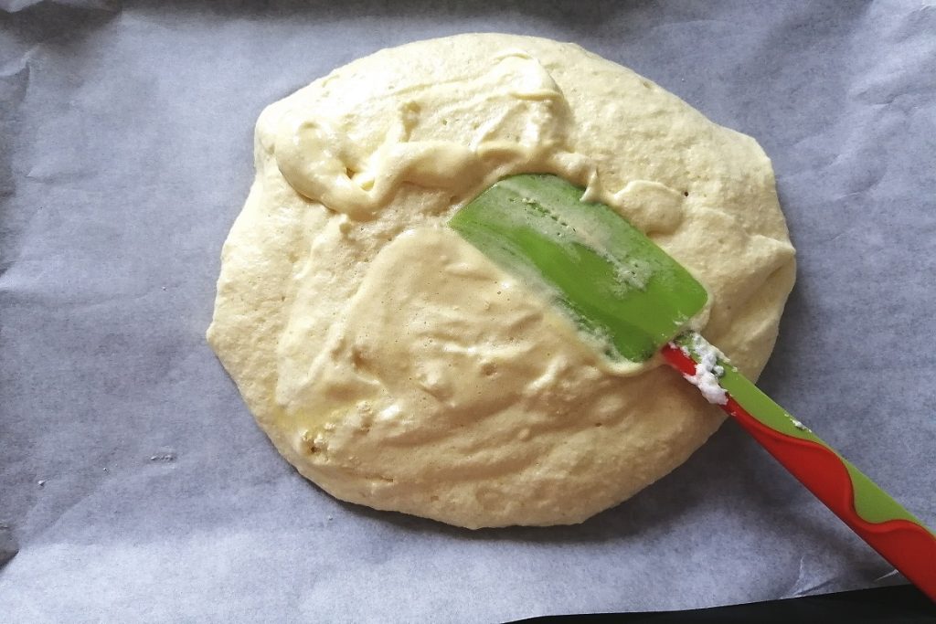 • Sortez du four et recouvrez d’une autre feuille de papier sulfurisé, retournez et retirez délicatement le papier.