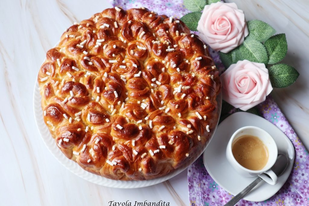 Le gâteau de petites roses est réalisé avec une pâte de brioche, et pour le réaliser, j’ai utilisé la recette du pâtissier Andrea Di Giglio pour la préparation des croissants.