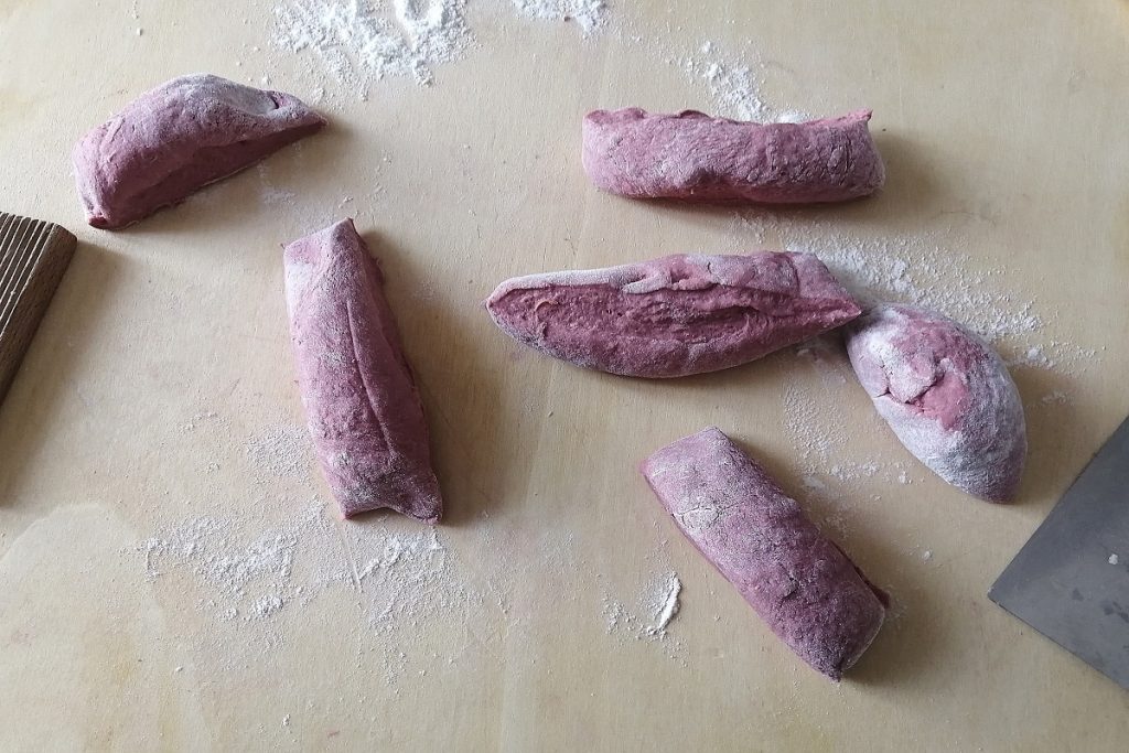 Coupez en petits morceaux d’environ deux cm, que vous passerez sur une planche à gnocchi.