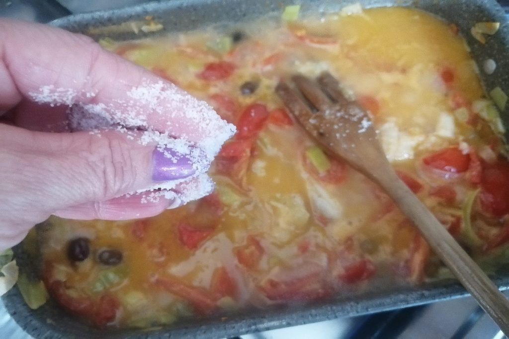 Dans ma recette, je l’ai préparé avec quelques tomates cerises, pour donner une touche de couleur.