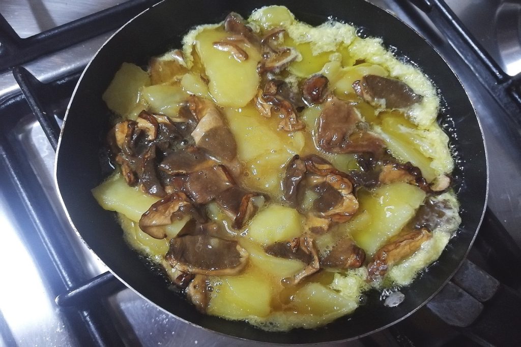 L’omelette avec pommes de terre et cèpes est parfaite pour les amateurs de champignons, un plat principal invitant aux saveurs et parfums automnaux qui pourrait aussi être servi en entrée lors d’un dîner entre amis.