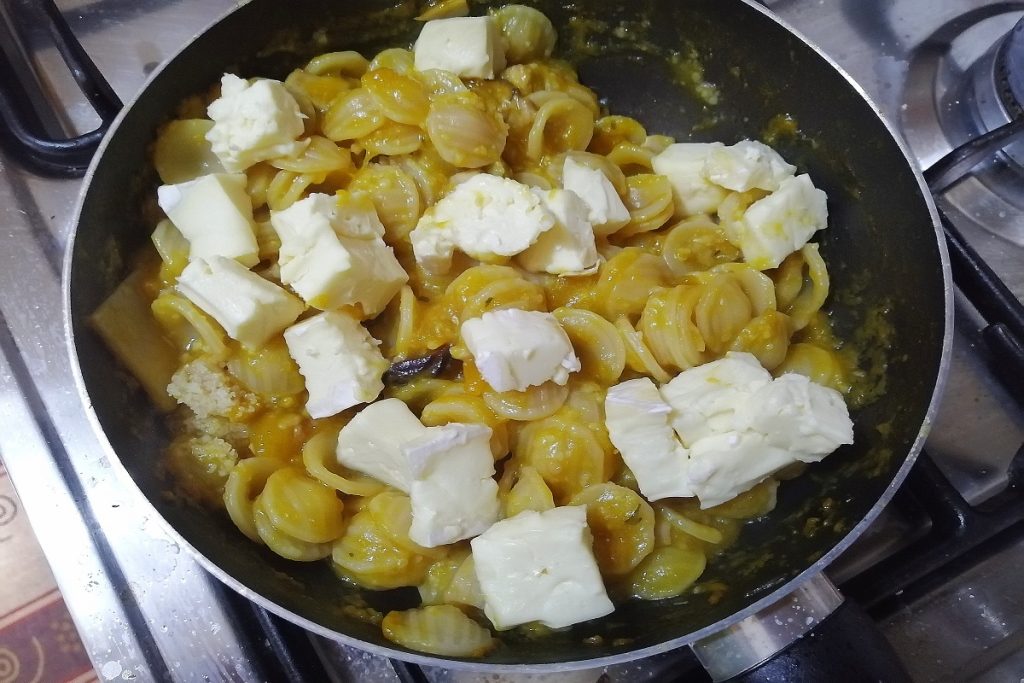 orecchiette avec crème de potiron, cèpes et brie
