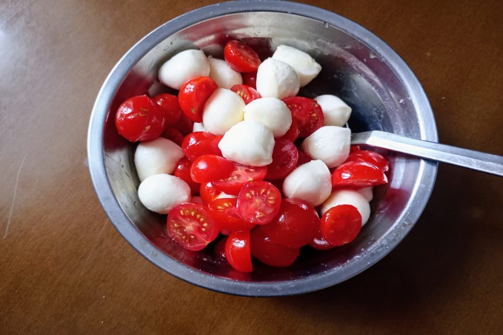 Ajoutez les tomates et les petites mozzarellas et mélangez le tout.