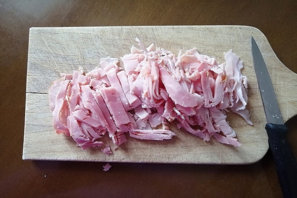 Incorporez le jambon cuit et laissez parfumer pendant quelques minutes en remuant.