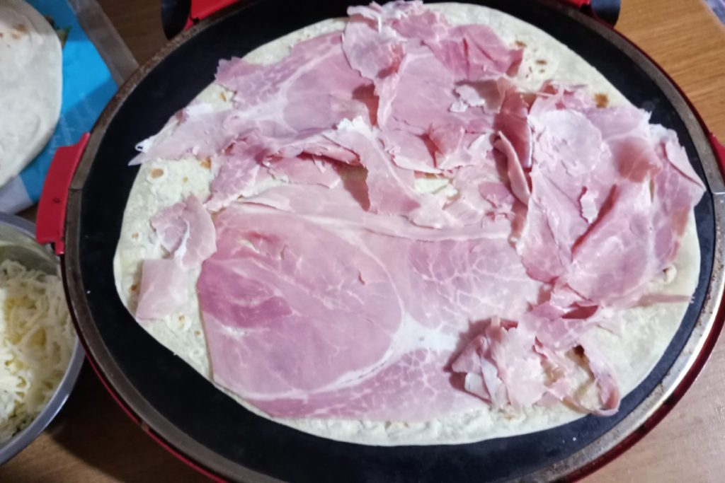 Garnissez la piadine avec le jambon cuit.