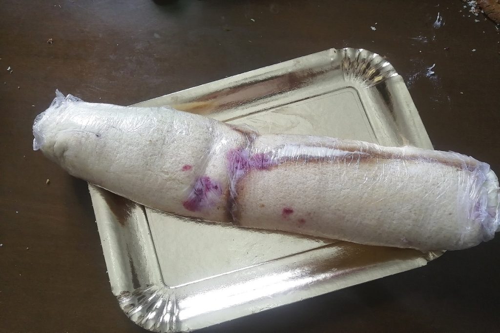 Scellez bien le roulé avec le film et placez-le au frigo au moins trois heures, mieux encore s’il repose une journée.