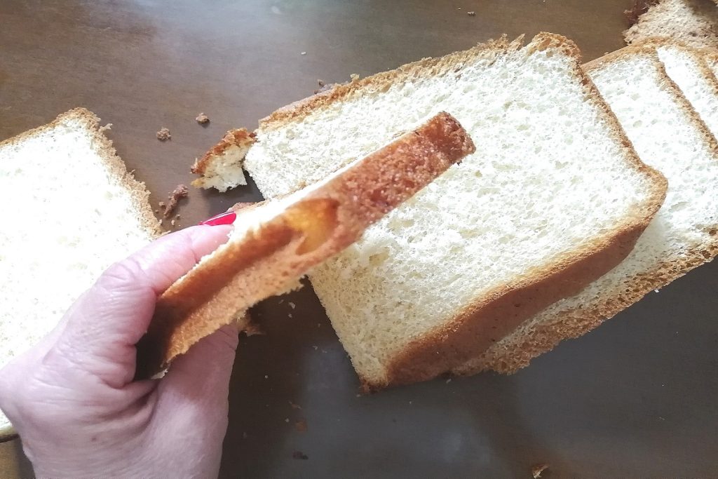 Coupez en tranches pas trop épaisses et retirez les bords anguleux de la première et de la dernière tranche.
