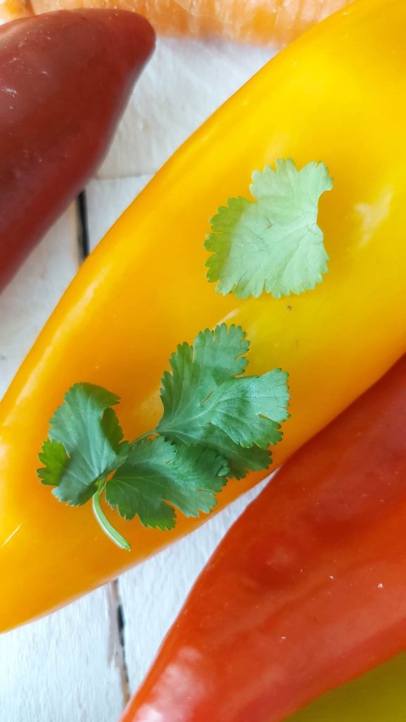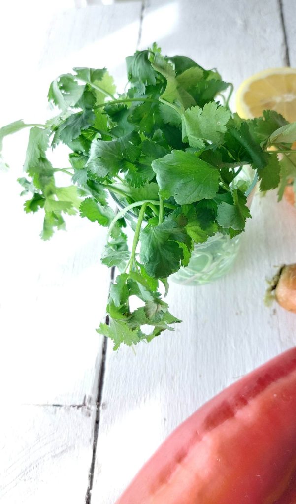 Un accompagnement épicé et particulièrement savoureux : carottes et poivrons aux pistaches et coriandre. Aujourd’hui je veux vous parler de la coriandre, plante qui, à première vue, ressemble beaucoup à notre persil, mais qui ne l’est pas.