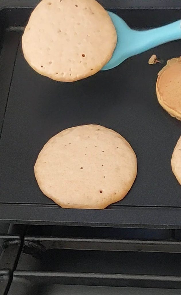 Ne retourne pas le pancake trop tôt, essaie de le soulever délicatement avec une spatule.