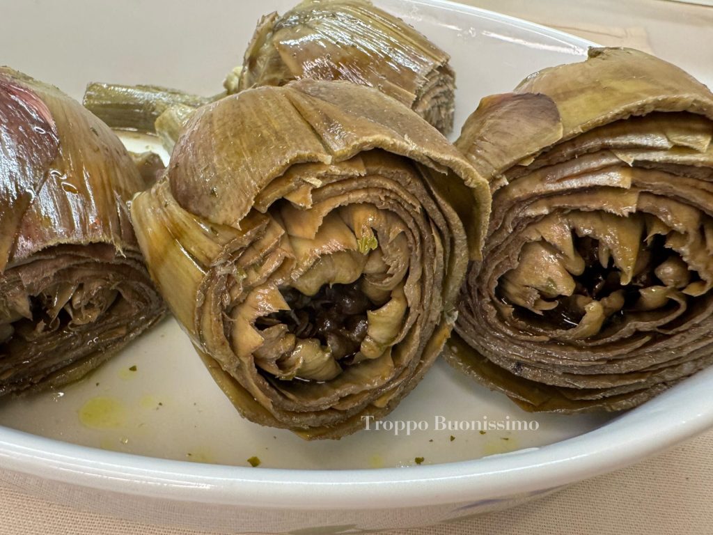 Si tu aimes les artichauts, tu dois absolument essayer les artichauts à la Romaine. Ils sont parfaits pour accompagner des plats de viande ou simplement à déguster avec un bon pain de campagne. Leur principale caractéristique est la cuisson lente dans l’huile et l’eau, qui les rend incroyablement tendres et savoureux. Le choix de la bonne variété est fondamental : pour cette recette, on utilise les mammole, un type d’artichaut sans épines et avec un cœur tendre, parfait pour être farci d’un mélange aromatique de persil, menthe et ail.