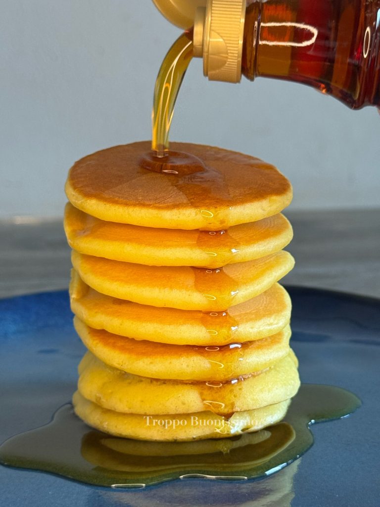 Les pancakes au yaourt sont le petit-déjeuner parfait : petits, moelleux et gourmands, idéaux à déguster avec des fruits frais, de la confiture, de la pâte à tartiner ou, comme je l’ai fait, avec une cascade de sirop d’érable. Grâce à la combinaison de levure, de bicarbonate et de quelques gouttes de citron, ils restent moelleux et légers, sans beurre. Ces pancakes ont un diamètre d’environ 6-7 cm, parfaits pour être empilés les uns sur les autres et laisser couler le sirop dessus… pur bonheur ! 😍