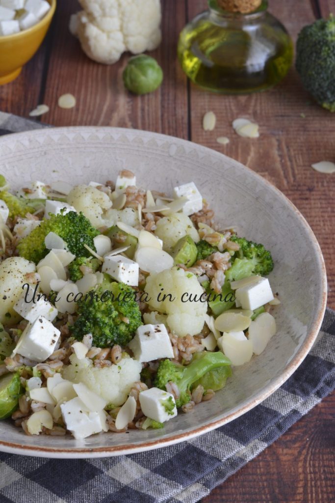Épeautre avec chou-fleur, brocoli, choux de Bruxelles et feta