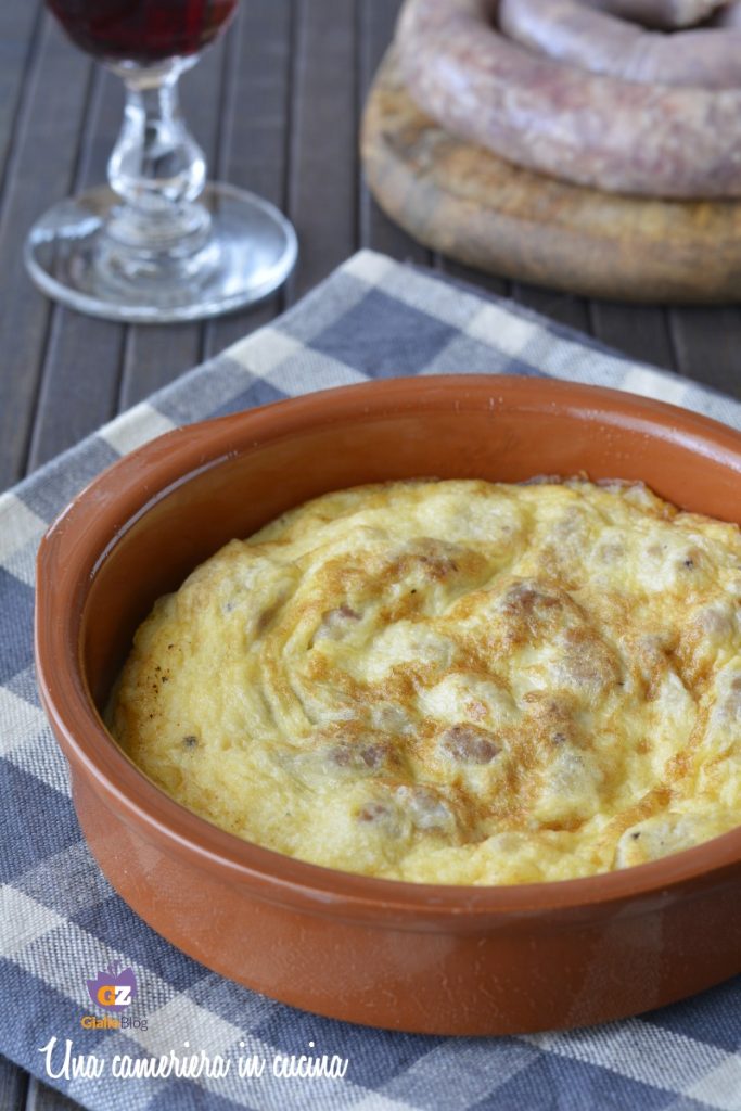 Il existe également une version lodigienne de cette recette « Omelette à la salamelle », où la saucisse est remplacée par de la salamelle (luganega), elle est déglacée avec du vin blanc et ne prévoit pas l’ajout de lait.