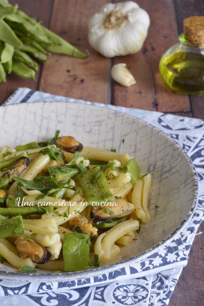 Les pâtes aux haricots mange-tout et aux moules sont un plat principal simple, léger et délicieux, à déguster au printemps/été. Pour la recette, vous pouvez utiliser le format de pâtes que vous préférez ; ici j’ai utilisé des caserecce qui sont assaisonnées avec des haricots mange-tout (appelés aussi haricots mangetout ou haricots Marconi — plus longs que les pois mange-tout, plus petits) préalablement cuits, et des moules, fraîches (à nettoyer) ou surgelées pour aller plus vite.