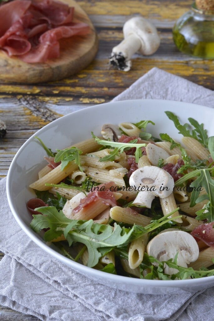 Pour préparer les pâtes froides avec bresaola champignons et roquette…