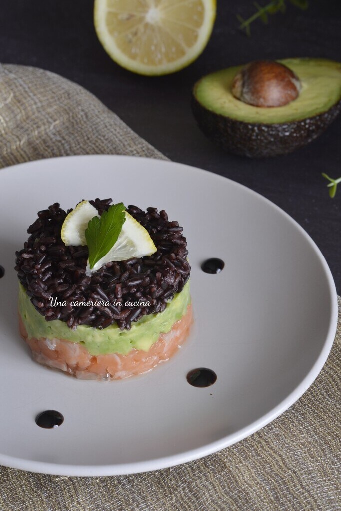 La tartare de saumon avec avocat et riz vénéré est une entrée savoureuse et simple à servir toute l’année, surtout lors des grandes occasions ou lorsque vous avez envie de quelque chose de différent comme entrée ou, en augmentant les doses, comme plat unique délicieux. Pour la recette, je me suis inspirée des tartares classiques que l’on trouve dans les restaurants de sushi en Italie, bien qu’il s’agisse d’une « fusion » (fusion ou cuisine contemporaine) de différentes cultures, de l’avocat, fruit exotique dont la consommation est très en vogue ces dernières années, au poisson cru, ici selon la culture japonaise, et enfin le riz, de variété vénérée, de couleur noire avec des grains allongés, très aromatique.