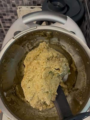 • Enlevez le gobelet doseur et ajoutez le reste de la chapelure si c’était trop mou. La dose peut varier en fonction de l’humidité de la chair d’aubergine.