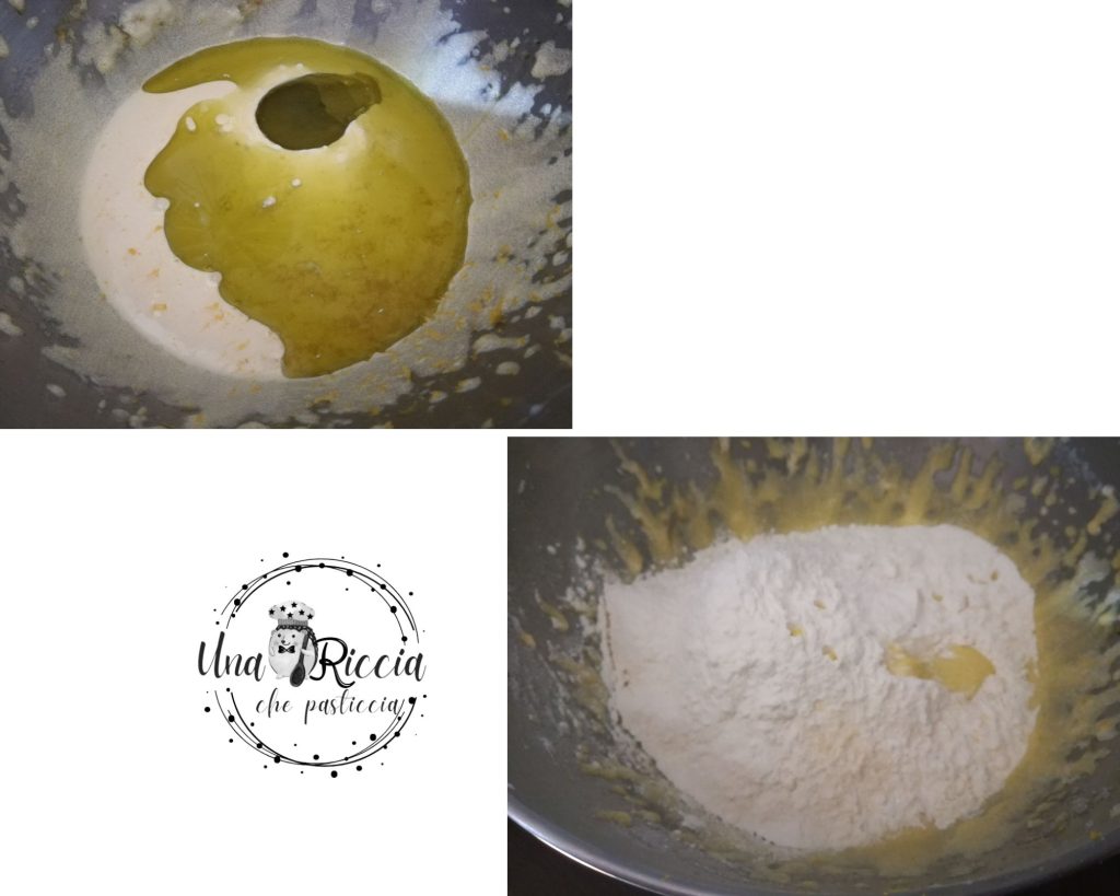 À ce stade, ajoutez l’huile et le zeste de citron, mélangez à nouveau puis ajoutez la farine et la levure tamisées. Mélangez tous les ingrédients ensemble, maintenant le mélange vous semblera très sec.