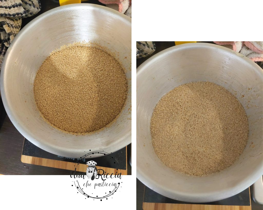 Pendant ce temps, réhydratons le couscous précuit. Dans un bol (j’ai utilisé le même que celui des pois chiches sans le laver pour avoir un peu de ces saveurs ici aussi), versons le couscous et couvrons-le de la même quantité de bouillon en veillant à ce que le liquide le recouvre complètement mais ne soit pas trop. Laissez comme ça pendant 5 minutes ou suivez les instructions sur l’emballage de votre couscous.
