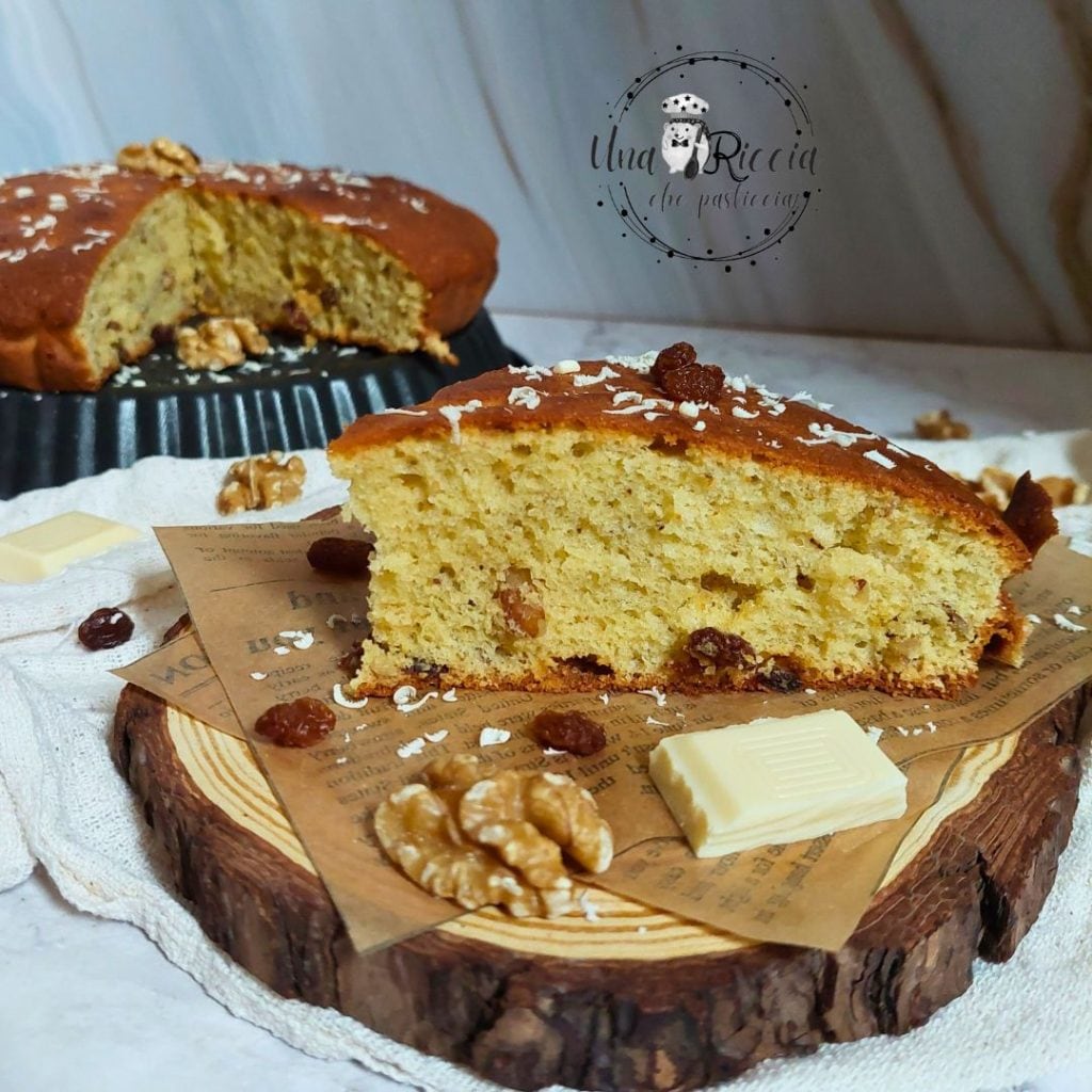 Le gâteau au chocolat blanc, noix et raisins secs a une texture parfaite, ni trop humide ni trop sèche, le goût sucré du chocolat blanc est atténué par la présence des noix qui évitent que ce gâteau soit écœurant. Chaque bouchée sera une véritable explosion de saveurs qui plaira à toute la famille, grands et petits, tout comme le gâteau aux pommes, les biscuits pour tous les goûts, un banana bread ou un cake au yaourt.
