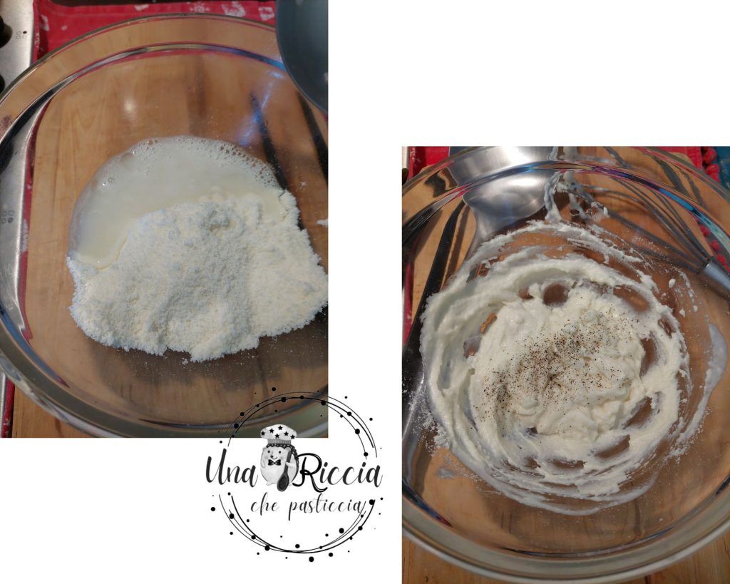 Pendant ce temps, mettons le pecorino râpé dans un bol et ajoutons une louche d’eau de cuisson des pâtes, puis mélangeons énergiquement avec un fouet à main, nous devons obtenir une crème pas trop liquide mais plus pâteuse.