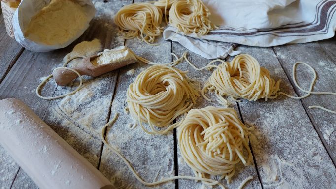Les pâtes faites maison avec une machine à pâtes prennent trois ou quatre minutes pour cuire, cela dépend toujours du format choisi.