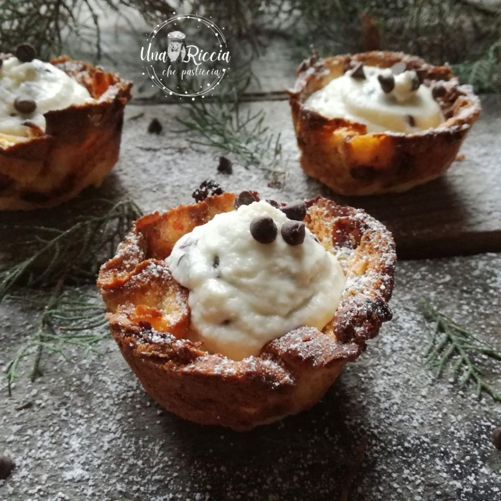 Aujourd’hui recette de récupération et de recyclage : petits paniers de panettone avec crème à la ricotta.
