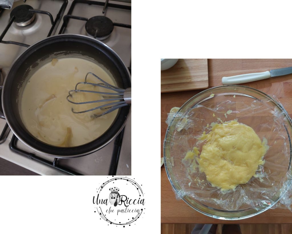 Versez à nouveau le mélange obtenu dans la casserole en le passant à travers un tamis. Allumez le feu à feu doux et faites cuire en remuant continuellement jusqu’à ce qu’il épaississe, cela prendra environ 10 minutes. Quand elle est prête, versez-la dans un bol, retirez les zestes de citron et couvrez-la de film plastique en contact. Laissez refroidir avant de la mettre au réfrigérateur et de pouvoir l’utiliser ensuite.