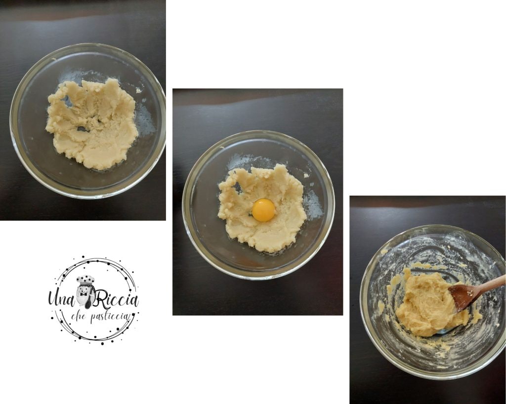 Placez la pâte obtenue dans un bol et étalez-la avec une cuillère en bois pour la faire refroidir. Lorsqu’elle est bien refroidie, commencez à ajouter les œufs un par un. Mélangez vigoureusement jusqu’à absorption complète, puis ajoutez l’autre œuf et mélangez à nouveau. Vous pouvez également réaliser cette étape dans un robot avec le crochet K.