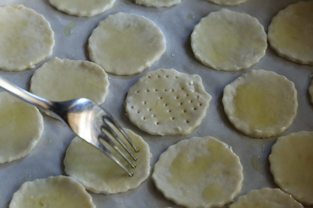 En utilisant la fourchette, j’ai percé tous les disques de pâte feuilletée.