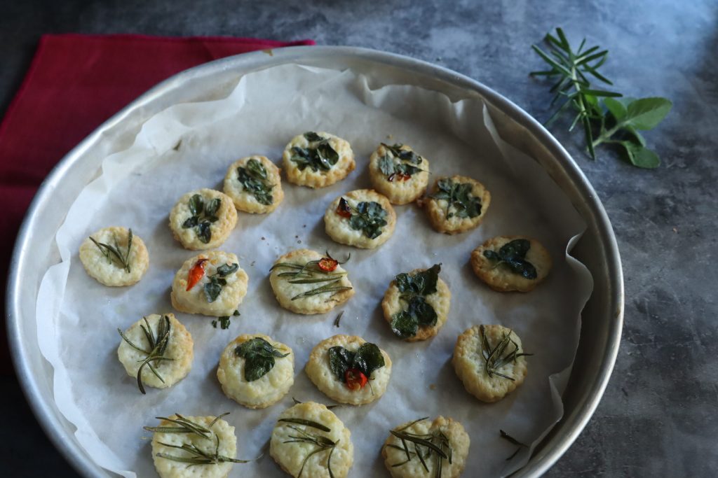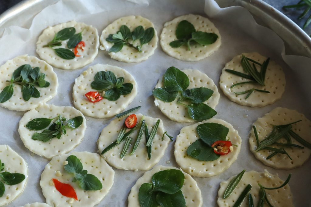 Une légère pincée de sel sur l’apéritif aux herbes et directement au four.