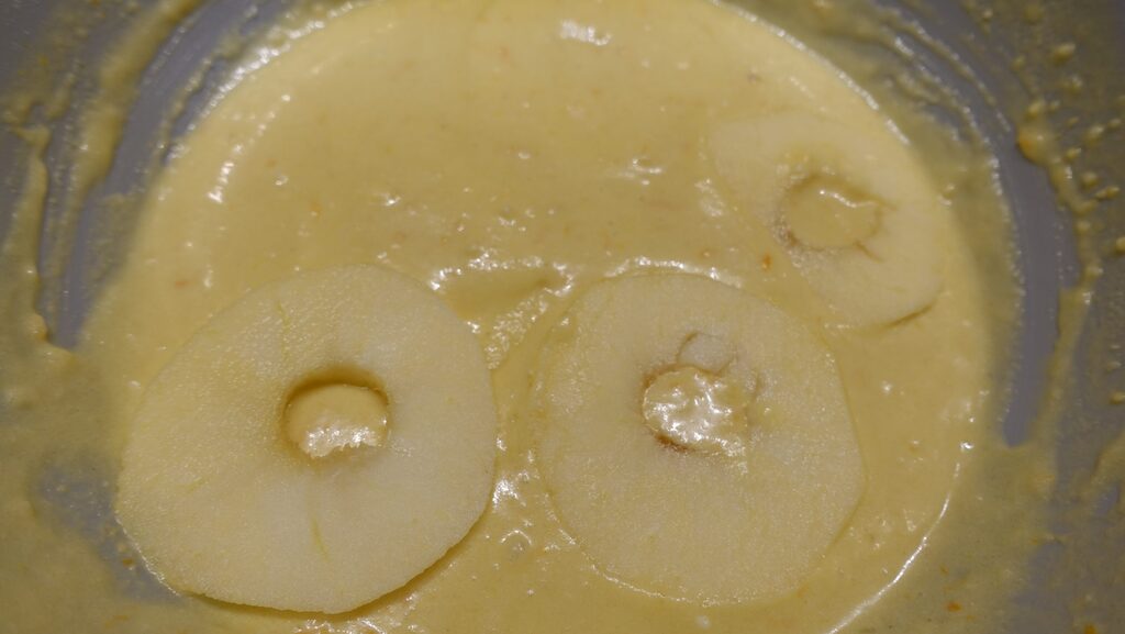 Plongez les tranches de pommes dans la pâte.