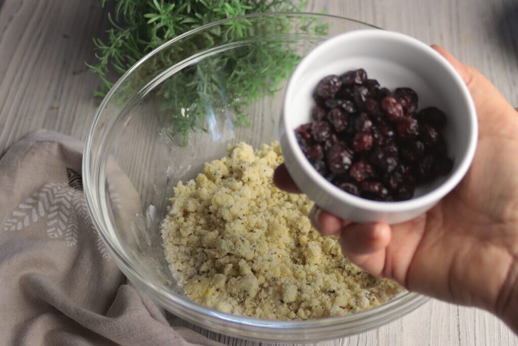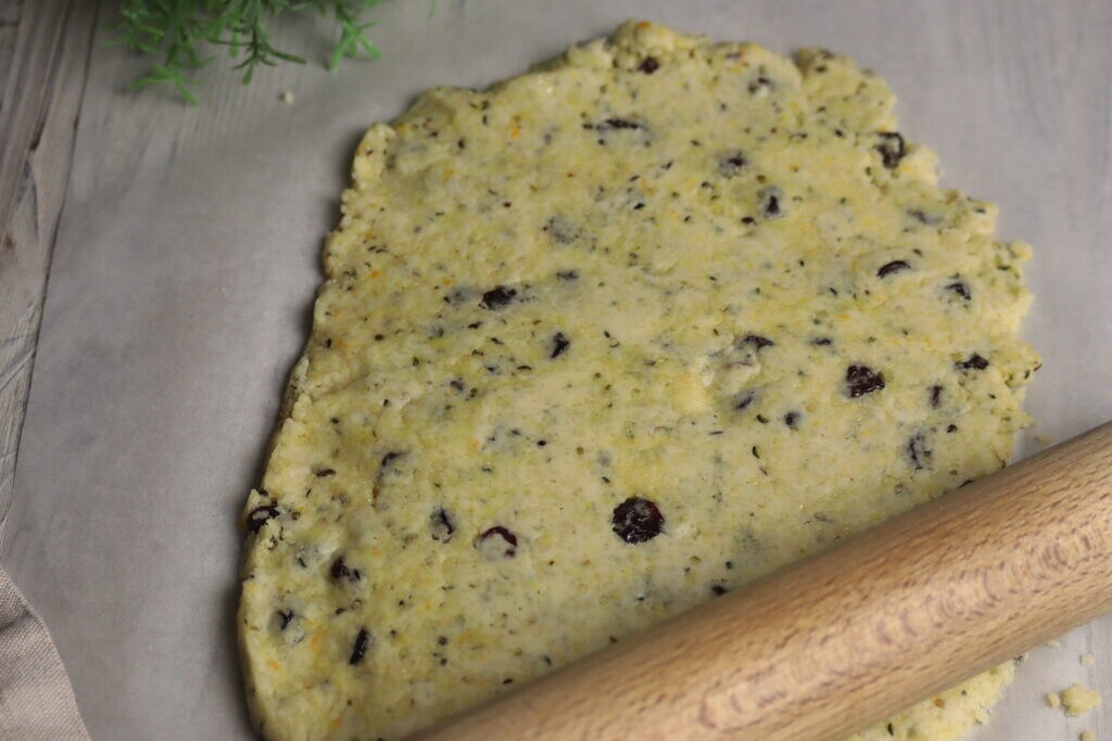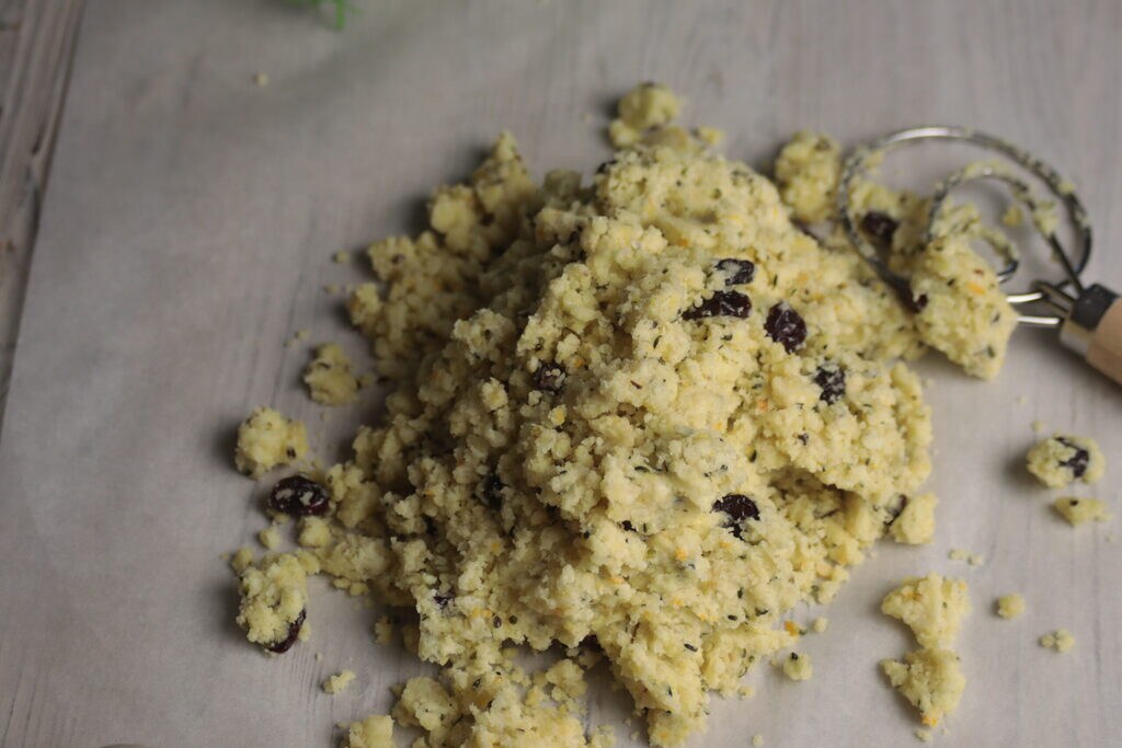 • J’ajoute à la pâte de biscuits et graines de chanvre les myrtilles séchées. Si nécessaire, ajoutez de l’eau si vous trouvez que la pâte est trop dense, j’en ai ajouté une tasse.